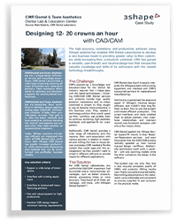"The high accuracy, consistency and productivity achieved using 3Shape systems has enabled CMRDental Laboratories to develop a new business model to providing greater value to their customers while increasing their productivity potential,” Matt Roberts, CMRDental Laboratory.