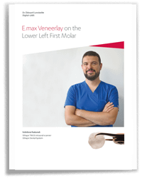 "On clinical examination, we can see a lingual crack and an occlusal-mesial leakage of the amalgam. Due to the large size of the defective restoration, the treatment choice is to use an indirect bonded restoration – veneerlay type," Dr. Édouard Lanoiselée. The case study describes the digital workflow for planning and placement of an e.max veneerlay on the lower left first molar.