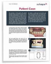 Case describes how with the help of technology, a patient who ordinarily may not receive care is able to. Using 3Shape design software enabled the design and printing of dentures at a lower cost in an easy to fabricate method. The case study describes the digital workflow used for creating and 3D printing a denture.