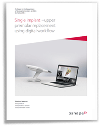 Case describes a prosthodontic restoration of the lower right first premolar with a screw-retained implant supported crown. Planning driven by TRIOS implant scanning, software and 3Shape scan bodies. The case study describes the full digital workflow in the planning, immediate guided surgical placement and the prosthodontic restoration of the lower right first premolar.