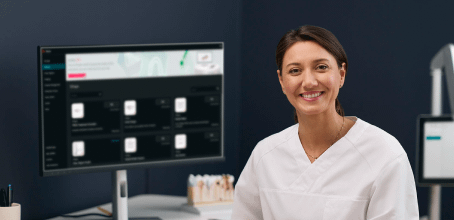 La odontología digital comienza con una impresión digital de la situación bucal del paciente. Este modelo 3D en pantalla puede ser el punto de partida de la conversación con el paciente, la planificación del tratamiento y la colaboración en el laboratorio.