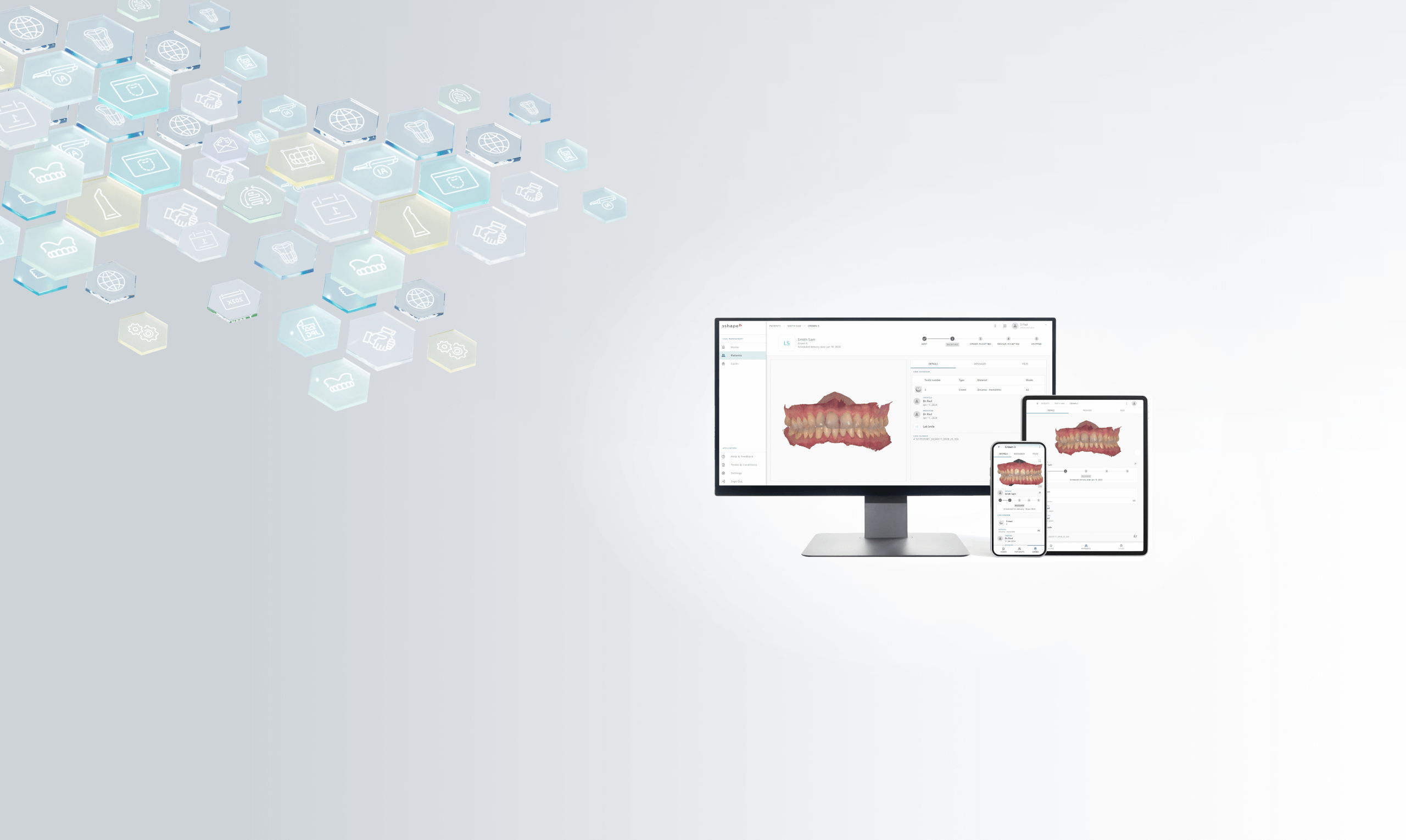 3Shape Unite Cloud is a completely new cloud-based and patient centric software accessible on any device – mobile, tablet, PC and Mac. Everything you do in 3Shape Unite instantly becomes available in 3Shape Unite Cloud, and vice-versa.